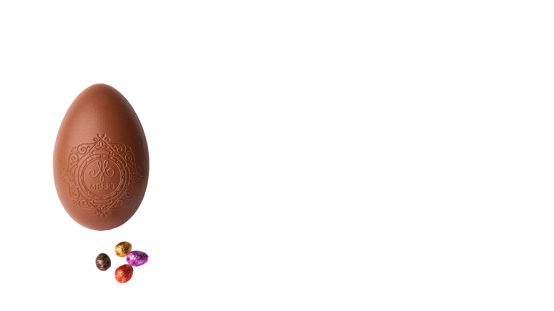 Milk chocolate Easter egg filled with little chocolate eggs (white chocolate, dark chocolate and milk chocolate).