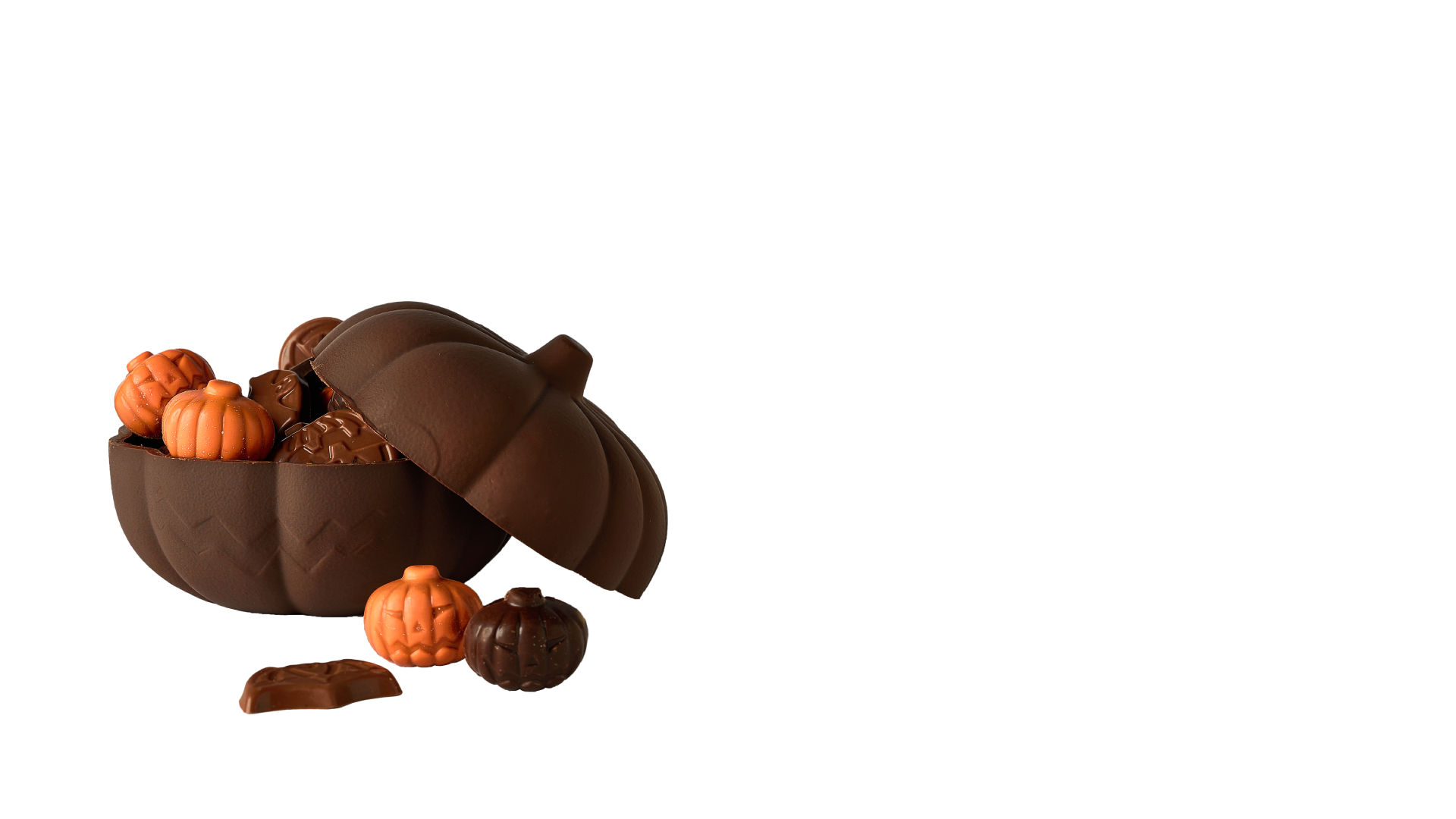 Dark chocolate pumpkin filled with milk and dark chocolates and praline... Plus de détails