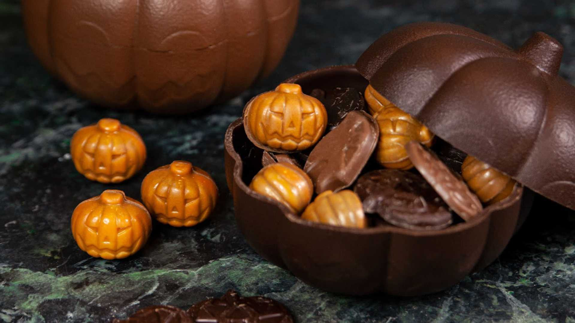 Dark chocolate pumpkin filled with treats