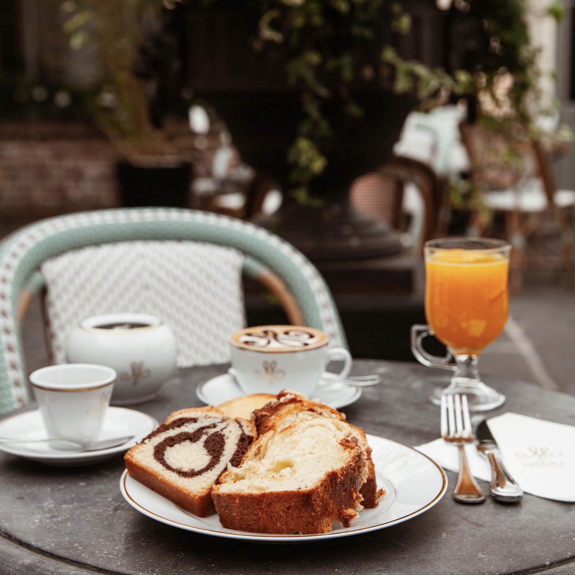 Installez-vous au cœur de ces murs chargés d'histoire(s) et succombez aux douceurs que les artisans de la Maison vous proposent : Des pâtisseries à la fois légères et gourmandes accompagnées de thés (sélectionnés par nos experts) et de boissons chaudes ou fraîches.