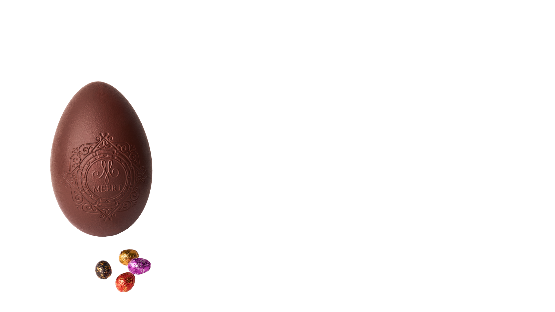 Œuf de Pâques en chocolat noir garni d'un assortiment de petits oeufs (chocolat noir, au lait et blanc)